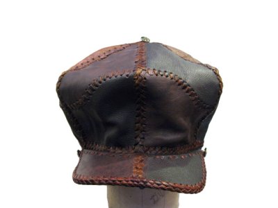 茶系の2トーンカラーでパッチワーク状に縫い合わせられています。