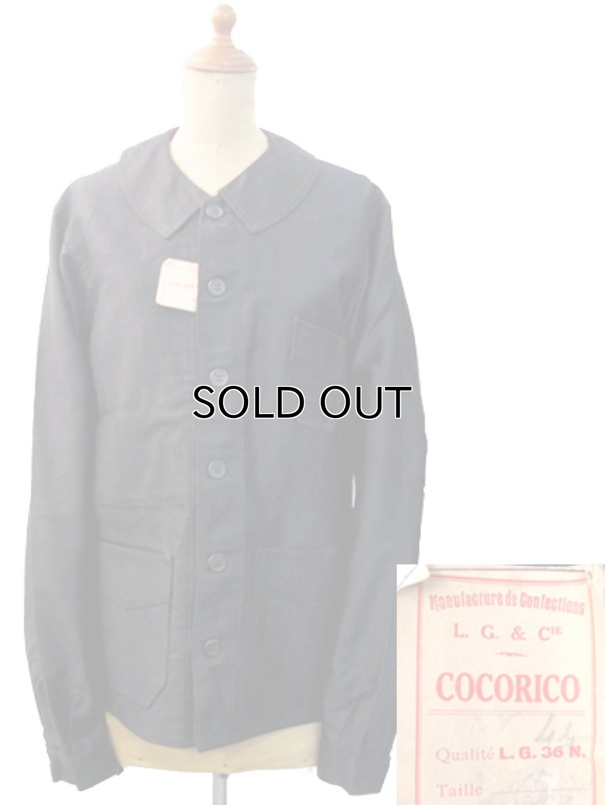 ~1950's "COCORICO" French Work Cotton Moleskin Jacket Black DEAD STOCK size S (表記なし)