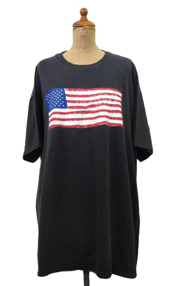 1990's Hanes "Stedman" US Flag Print T-Shirts BLACK size XL~ (表記 XL 46 -48)