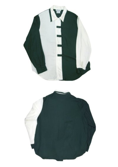 1990's~ "TOWER HILL" L/S Design Rayon Shirts GREEN / NATURAL size M - L (表記 L)