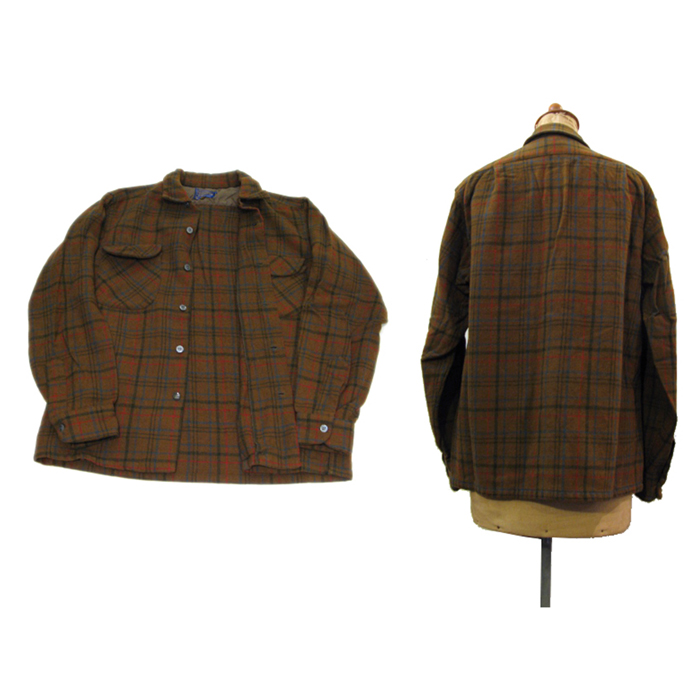 - > 1960's "Pendleton" L/S Wool BOX Shirts BROWN size S - M (表記 M)