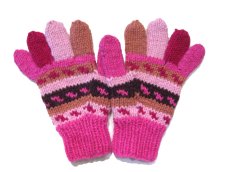 ピンク系のカラーリングで編まれたノルディックパターンとなります。
