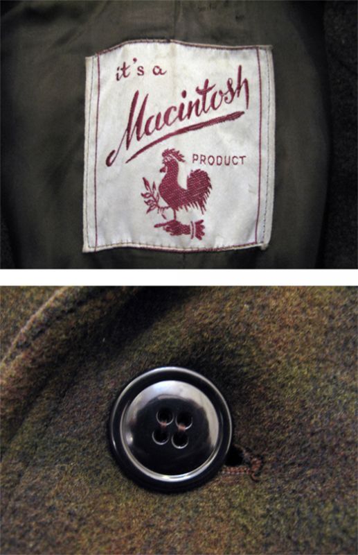 1960's "Macintosh" Melton Wool Single Coat OLIVE / BROWN / BLACK size M - L (表記 不明)