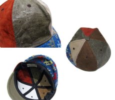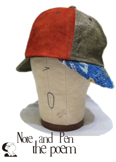 古いミリタリーの生地や、スエードレザーなどを使用して帽子を作りました。