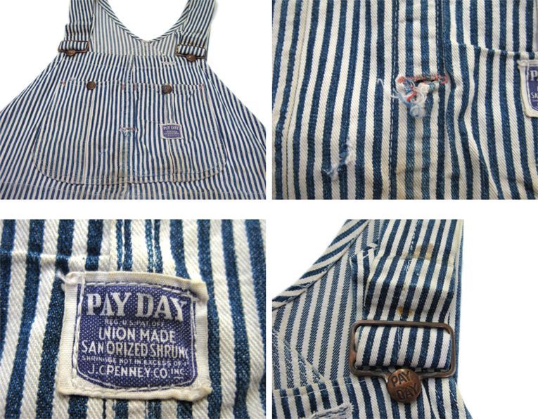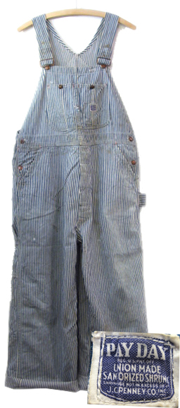 - > 1940-50's J.C.Penny PAY-DAY Hickory Stripe Overall Navy / White size L (表記 不明)