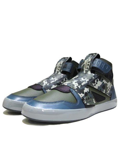 フロントからサイドにかけての迷彩柄、光沢のあるソールがポイントとなっています。