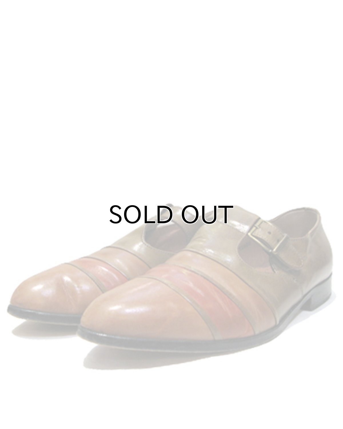 1980's Pierre Cardin espace Strap Leather Shoes -made in ITALY- Multi Brown size 10.5C (28cm ~ 28.5cm)