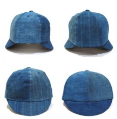 1900年代前半ごろのインディゴ/藍染めのコットン生地を使用して帽子を作りました。