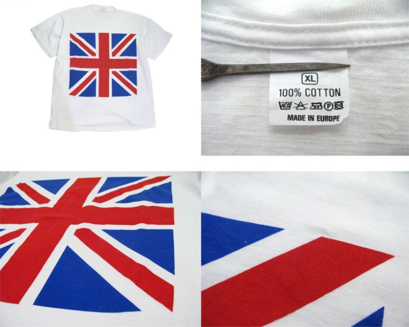 - > Europe "Union Jack" Print T-Shirts WHITE size M - L (表記 XL)