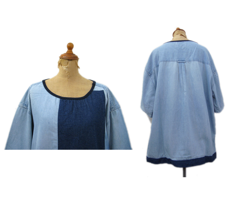 古着のデニムを使用し、ゆったりと着られるシャツを作りました。