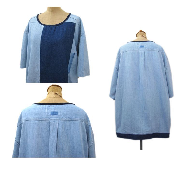 古着のデニムを使用し、ゆったりと着られるシャツを作りました。