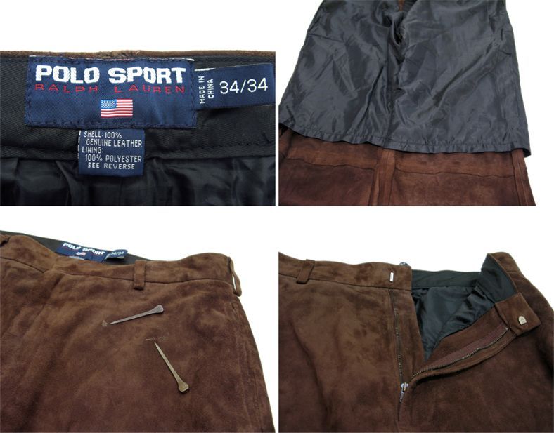 "POLO SPORT" Ralph Lauren Nuback Leather Trousers BROWN size w 34 inch (表記34/34)