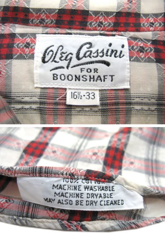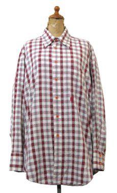 - > 1960-70's "Oleg Cassini" Check Pattern L/S Shirts Natural / Red size L (表記 16 1/2)