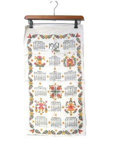 OLD Linen Fabric Tapestry "1961 Calendar" NATURAL 39cm x 73cm