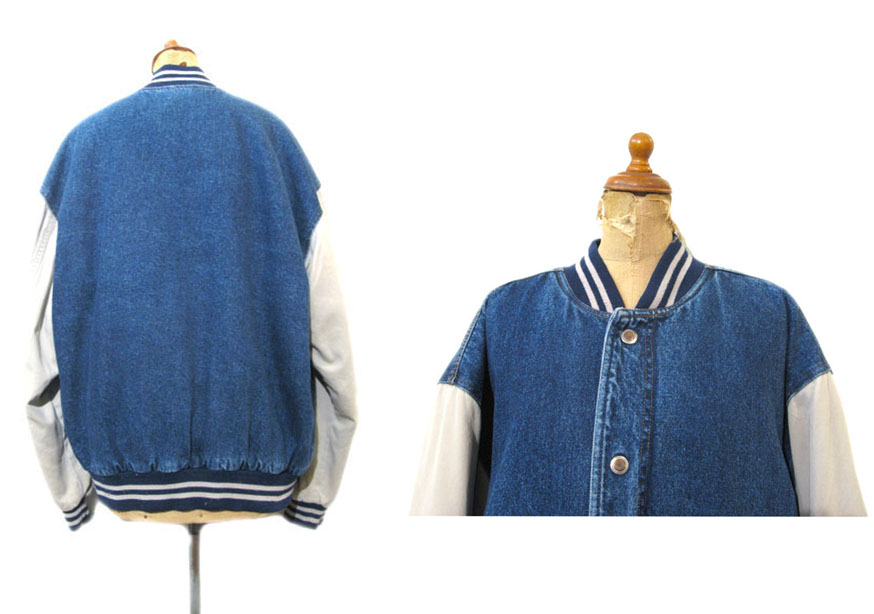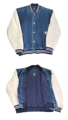 - > 1990's "basic EDITIONS" Denim / Cotton Stadium Jacket Blue Denim / Grey size L - XL (表記 M)