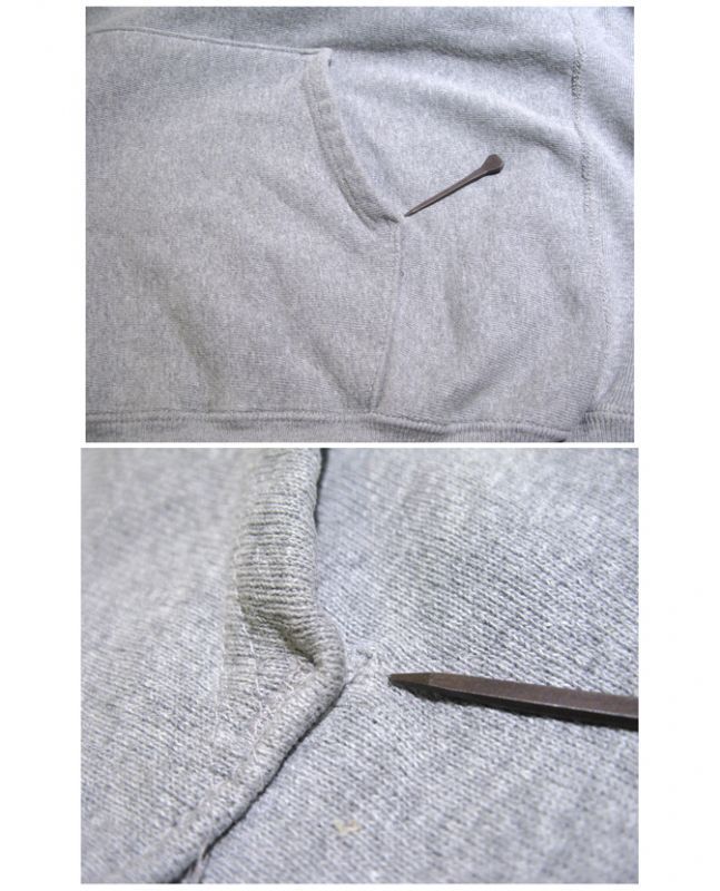 両袖リブ先にホツレ、フロントポケット左側の縫い合わせ部分にリペアがあります。