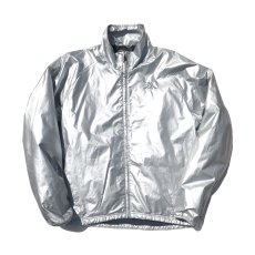 存在感のあるシルバーカラーのナイロンジャケット。