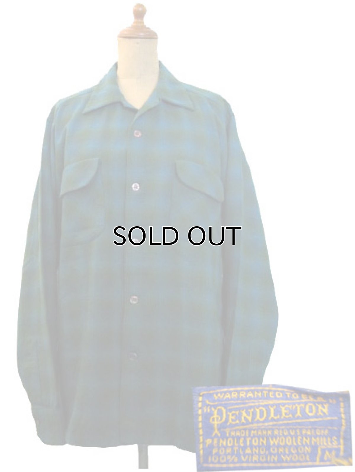 1960's "Pendleton" L/S Ombrer Check Wool Shirts Green size M - L (表記 M)