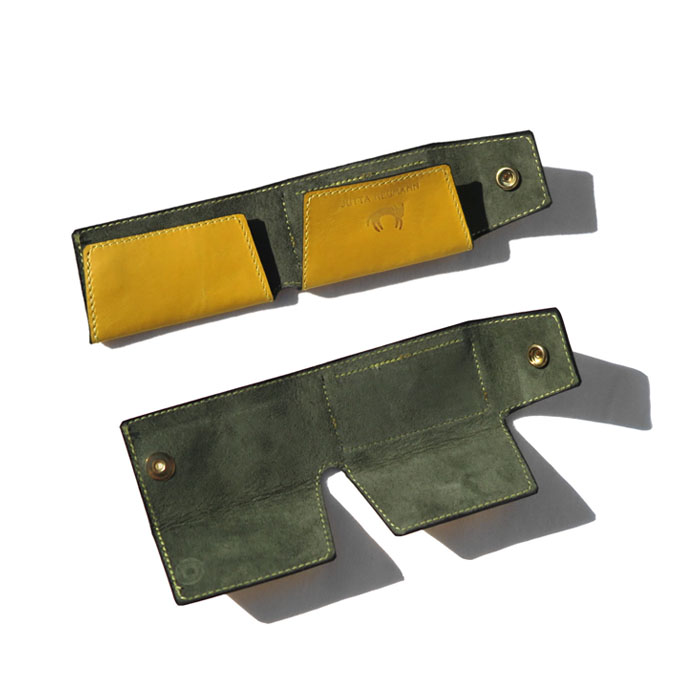 "JUTTA NEUMANN" Leather Wallet "Scotts Purse" -MINIMAL SIZE- color : YELLOW / SMOKY GREEN