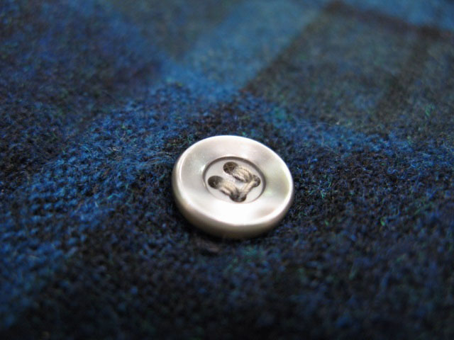 青、紺、緑のチェックパターンで、左胸にワンポケット。