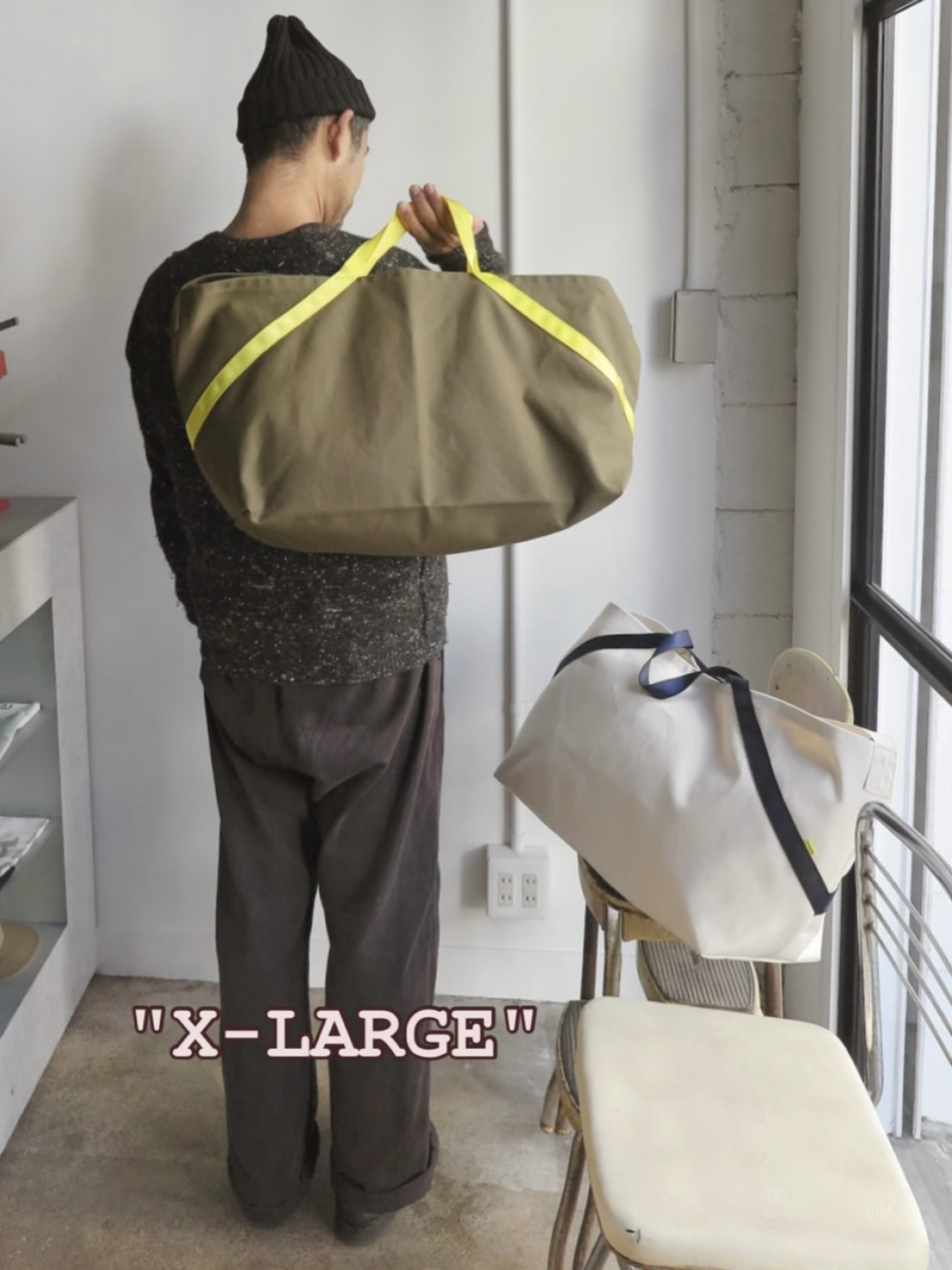 ・新登場のXLは、Lの横幅をさらにたっぷりと取った特大サイズ。
