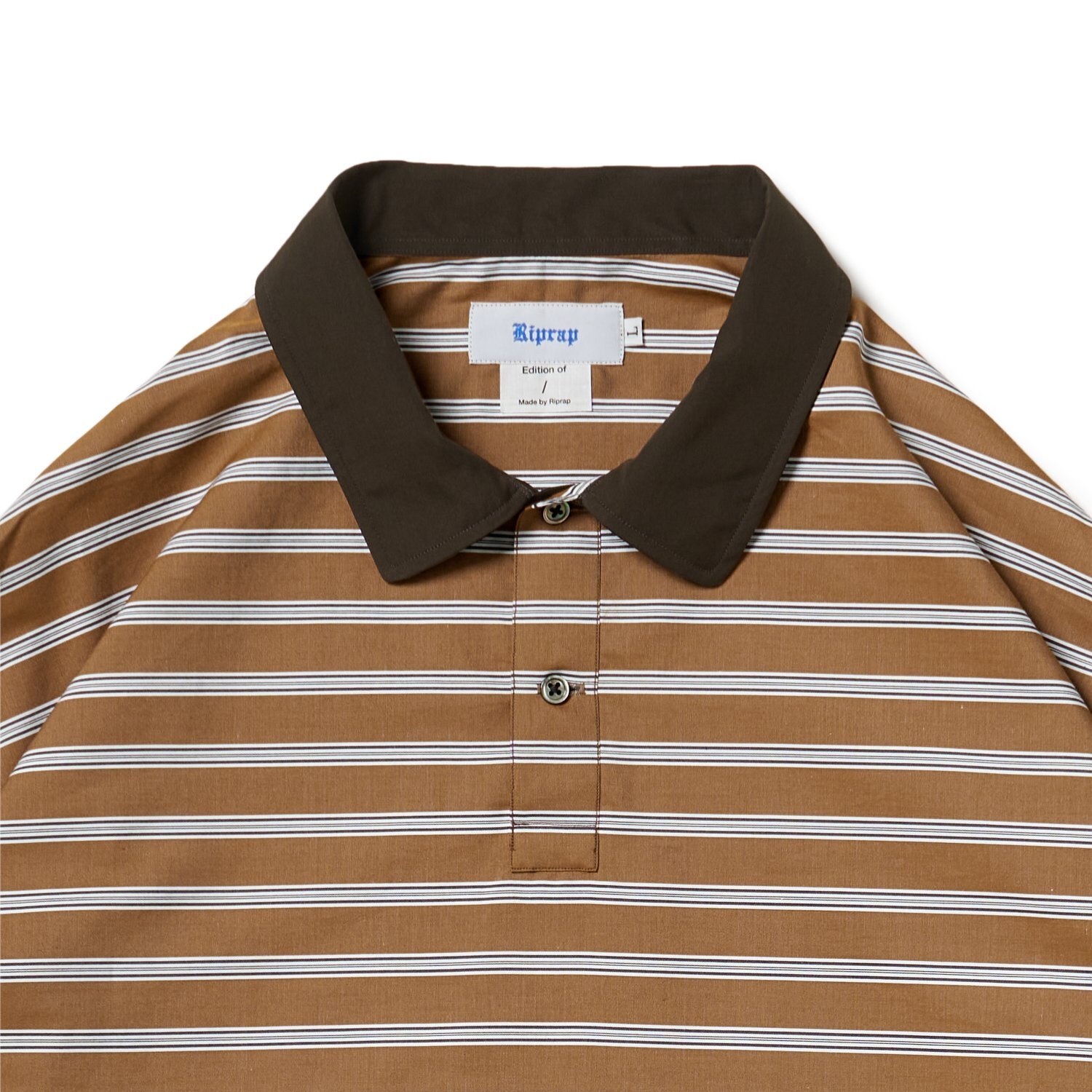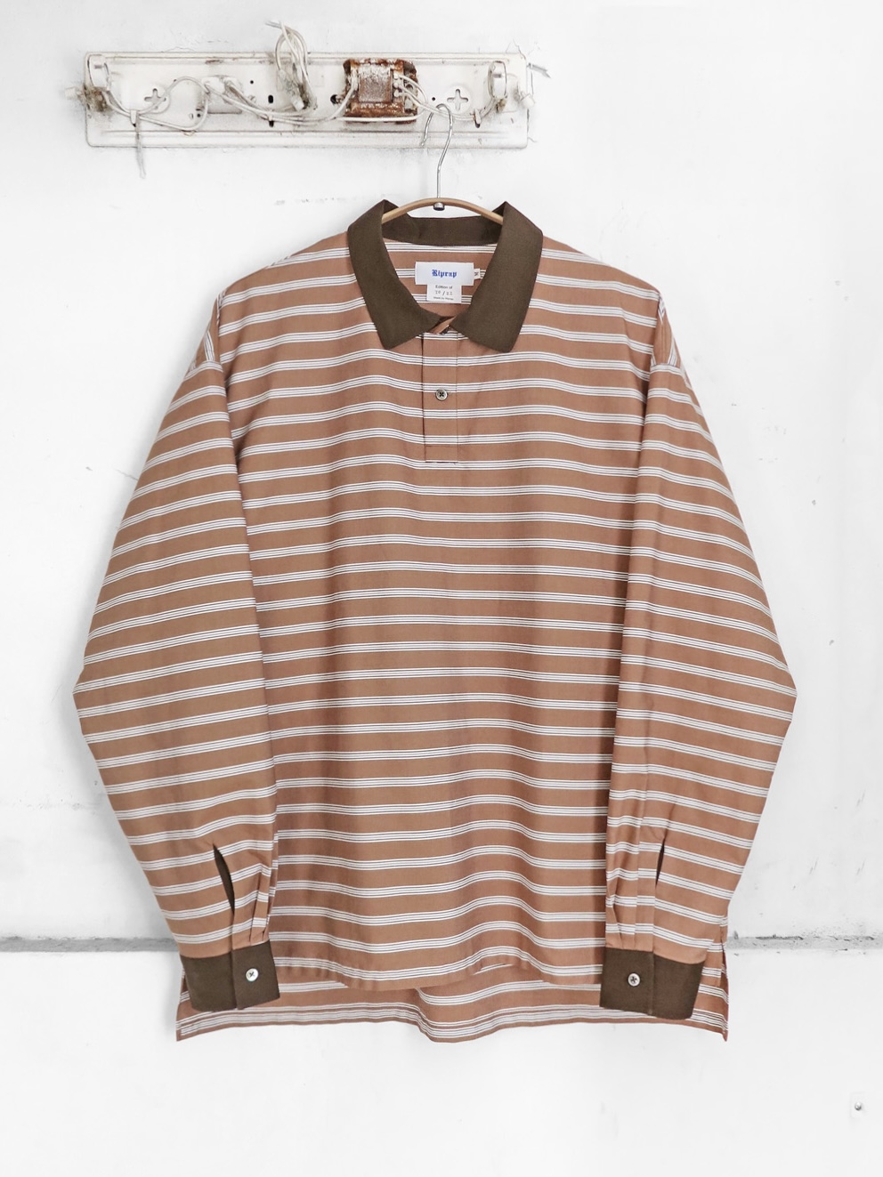 Riprap "POLO SHAPED SH L/S" -COTTON POPLIN STRIPE- color BRICK/NAVY