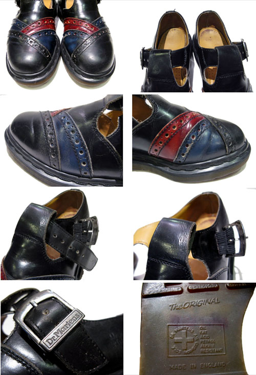 "Dr.Martens" Monk Strap Leather Boots BLACK/RED/BLUE made in England size UK 4 ( US 5 / 23 cm )