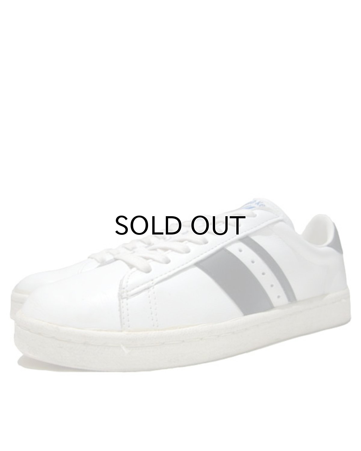白ベースに黒のライン、生成りのラバーアウトソールで、丸みのあるカタチがポイント。