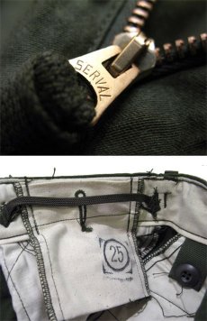 フロントジッパーは"SERVAL" ブラス製、ウエストはサイズ調整ができる様アジャスターが付き、