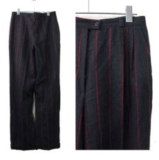 1990's EUROPE Stripe Wool Trousers Charcoal/Red size w 29.5 inch (表記 40)