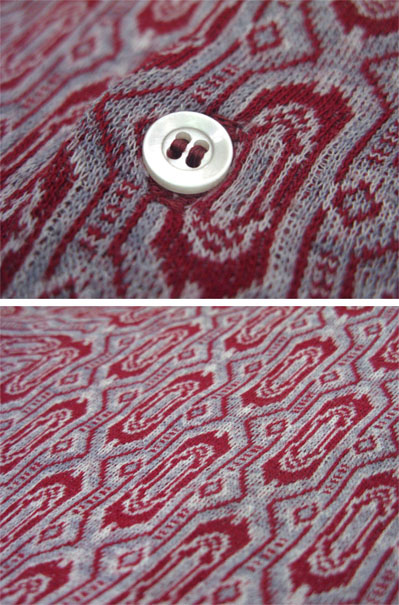 1970's~ Jacquard L/S Shirts 総柄 GREY/BURGUNDY size M 位 (表記 不明)