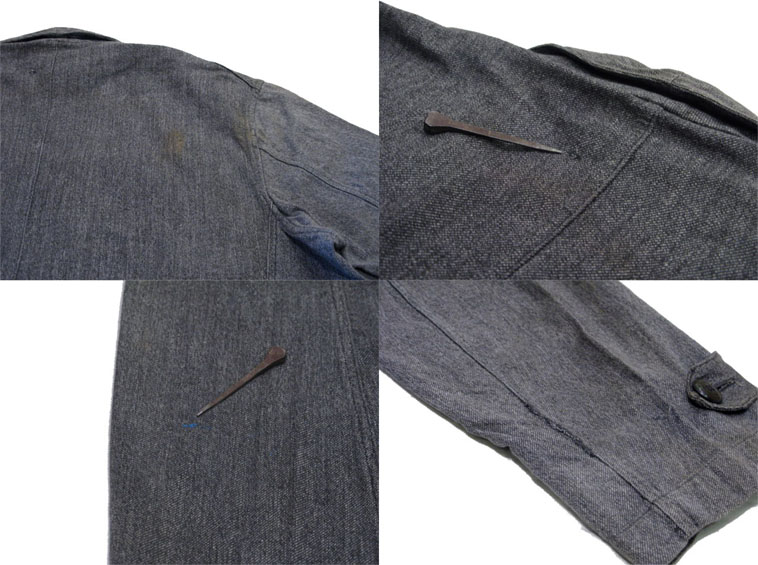 背面サイド腰部分にベルトループが外れたキズ、背面襟下に小さなキズ、背中に薄い汚れ、