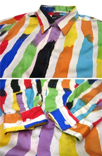 00's~ "Genelli" Design L/S Silk Shirts Multi color size XL~ (表記 XXL)